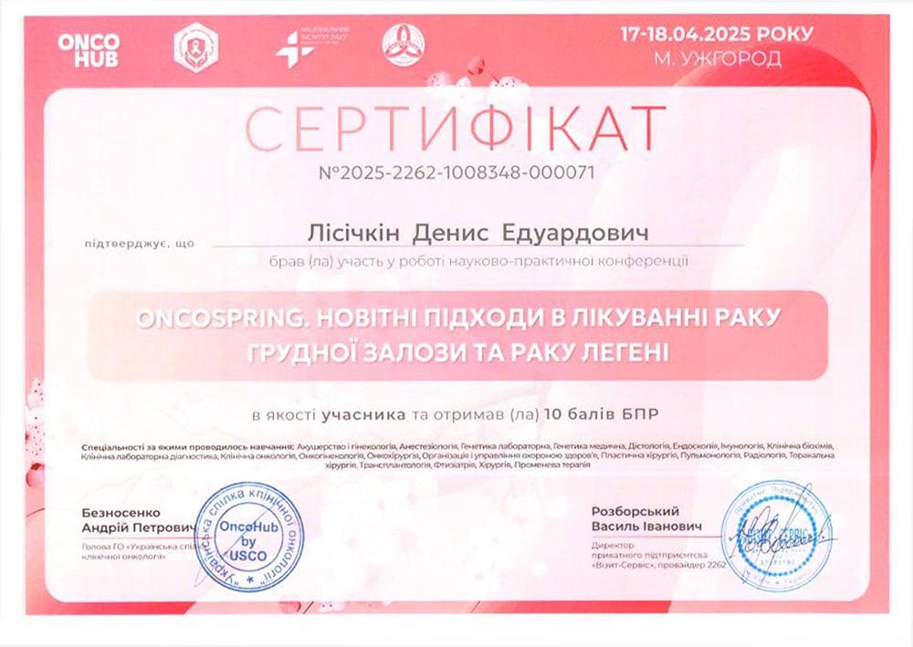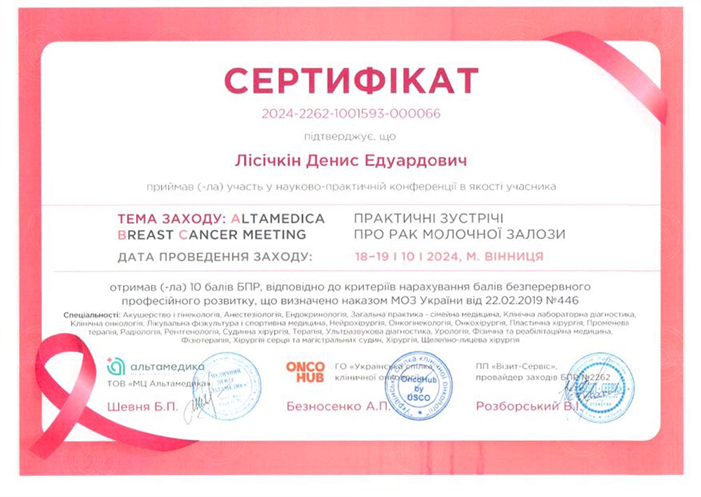 Працює в Healthy and Happy з 2026 року Публікації лікарівДенис Едуардович, зосереджує свою практику на ранній діагностиці та супроводі пацієнтів із новоутвореннями. З 2024 року працює в галузі мамології, приділяючи особливу увагу доброякісним і злоякісним утворенням в грудних залозах, а також динамічному спостереженню пацієнтів.