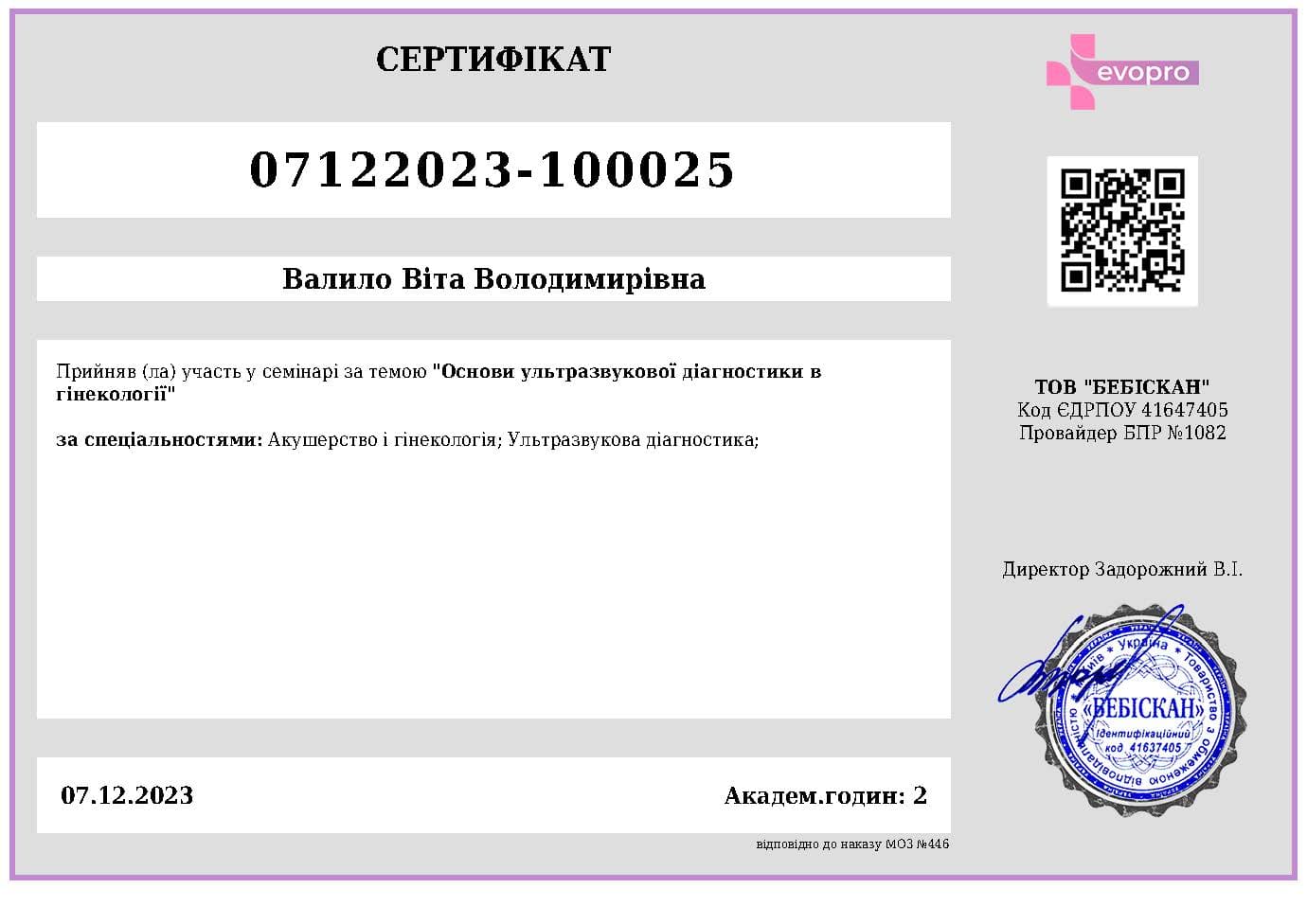 - 2012 рік – отримав спеціалізацію по судинній хірургії (Українська військово- медична академія).