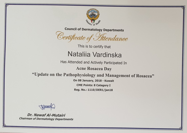 - 2020 рік – учасник конференції “Акне та себорейний дерматит у запитаннях та відповідях”.