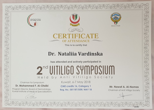 Хочу подякувати лікарю-дерматологу Вардинській Наталії Михайлівній. Кілька місяців мучився із зудом, допомогла вилікувати і нарешті я здоровий. Дуже уважний, чемний і професійний спеціаліст.
