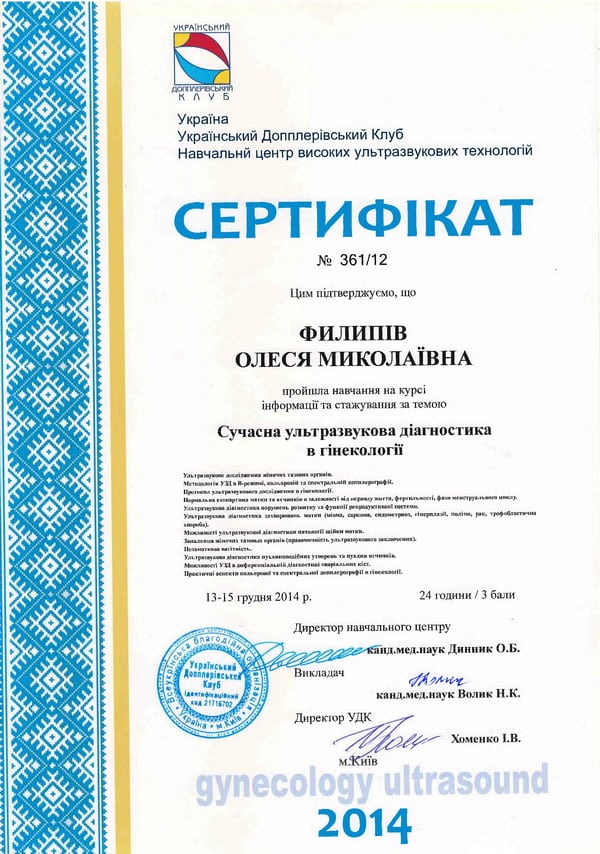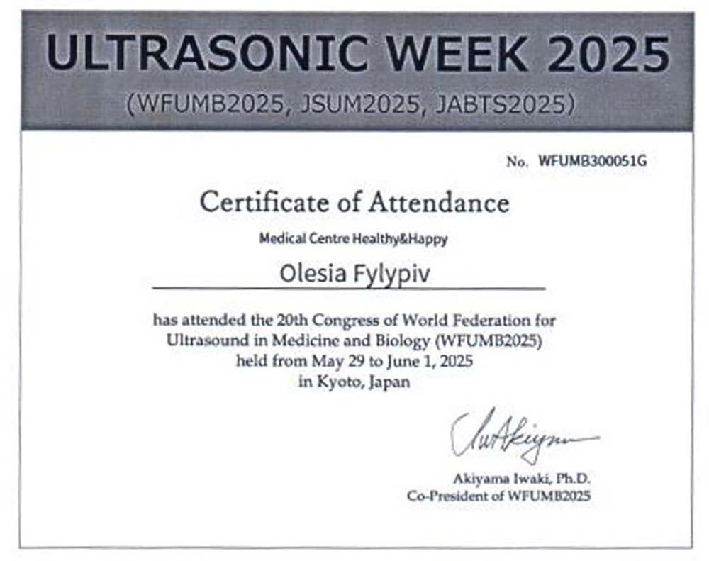- 2003 год — получила специализацию по специальности «Ультразвуковая диагностика».